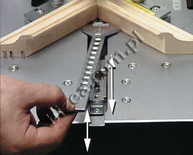 | Urządzenie do połączeń kątowych dla producentów ram z drewna, MDF lub tworzywa sztucznego Wyposażone w dwustopniowy pedał pneumatyczny (docisk i wbicie). Listwy mocowane są na stole roboczym w dwóch płaszczyznach.