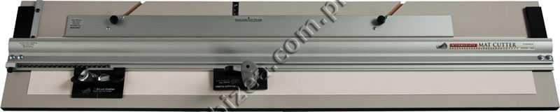 Przyrząd z liniałem na płycie do wycinania passe-partout z arkusza tektury o długości 1050 mm. Wyposażone w dwa wymienne ostrza: jedno do wycinania pod kątem 450, drugie do formatowania pod kątem 900.