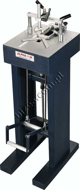 | Urządzenie do połączeń kątowych dla producentów ram z drewna, MDF lub tworzywa sztucznego Wyposażone w dwustopniowy pedał pneumatyczny (docisk i wbicie). Listwy mocowane są na stole roboczym w dwóch płaszczyznach.